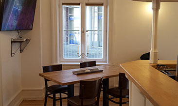 Beide Apartments sind voll ausgestattet mit eigenen Sitzbereichen und einem Flachbild-Multimedia-TV. Das hauseigene WLAN nutzen Sie kostenfrei. Das Apartment „Op’n Deck“ (max. 5 Personen) im Dachgeschoss ist mit knapp 58 qm etwas größer als das Apartment „1871“ (max. 4 Personen) mit 51 qm im Erdgeschoss.