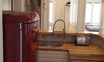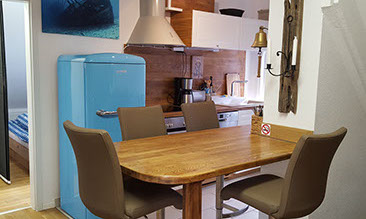 Beide Apartments sind voll ausgestattet mit eigenen Sitzbereichen und einem Flachbild-Multimedia-TV. Das hauseigene WLAN nutzen Sie kostenfrei. Das Apartment „Op’n Deck“ (max. 5 Personen) im Dachgeschoss ist mit knapp 58 qm etwas größer als das Apartment „1871“ (max. 4 Personen) mit 51 qm im Erdgeschoss.
